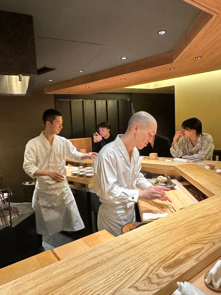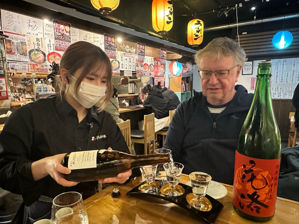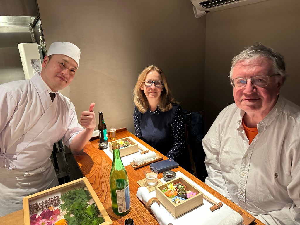 Restaurants are mostly small with say 10 covers seated at an L shaped counter around the chef/owner who prepares the food in-front of you, talking to the customers and sometimes joining them in a sake. There is no tipping or service charge and offering a drink to the chef is common practice.