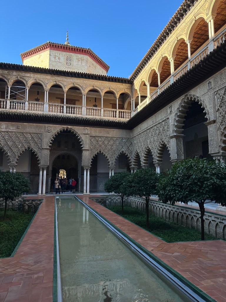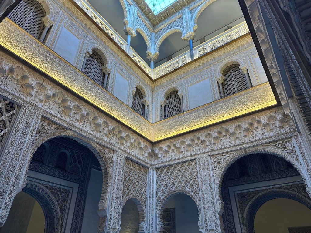 The Alcázar is a Spanish Royal Palace and one of the official residences of the Spanish Royal Family. As with the cathedral it is situated on the site of a Moorish citadel for the city. It was progressively rebuilt from 1248 following the conquest of the city but most of the important decorated parts date from the 1360s, built by Pedro I. It is a little confusing as the building was constructed in the Mudejar style- Moorish.