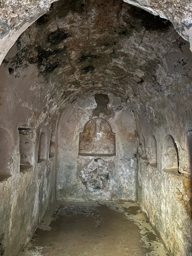 Romans cremated bodies and buried the ashes underground. Descendants would visit the tombs and honour their ancestors with feasts. One of the tombs is named Tomb of the Elephant because of a statue found. There is one tomb which can be accessed via a ladder for those inclined!