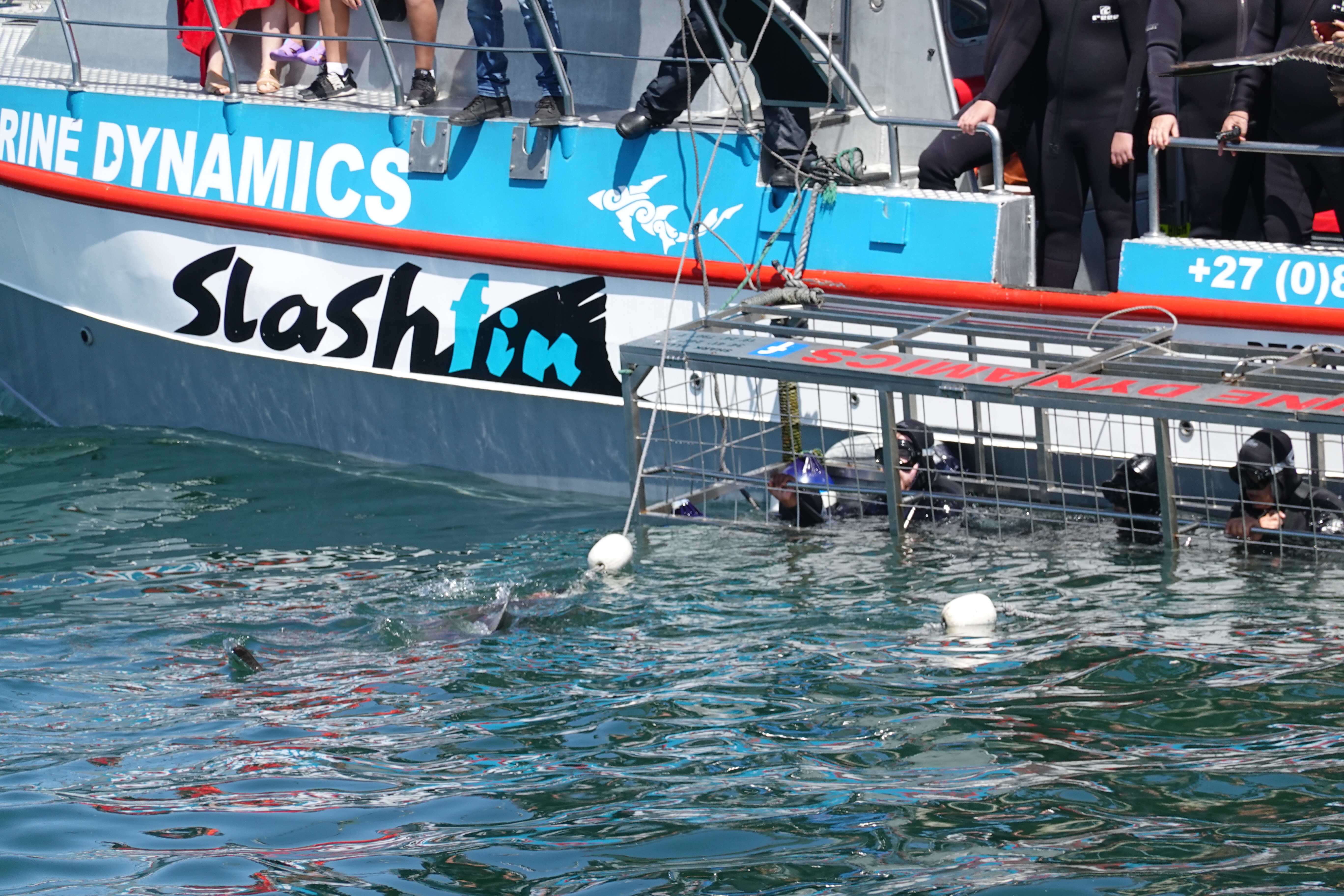The seal colony thrives with 60,000 members, which can be smelt from some distance away, so we held our noses as we watched their swimming skills. The sharks we saw were being attracted by a cage diving boat. The divers were more visible than the sharks !