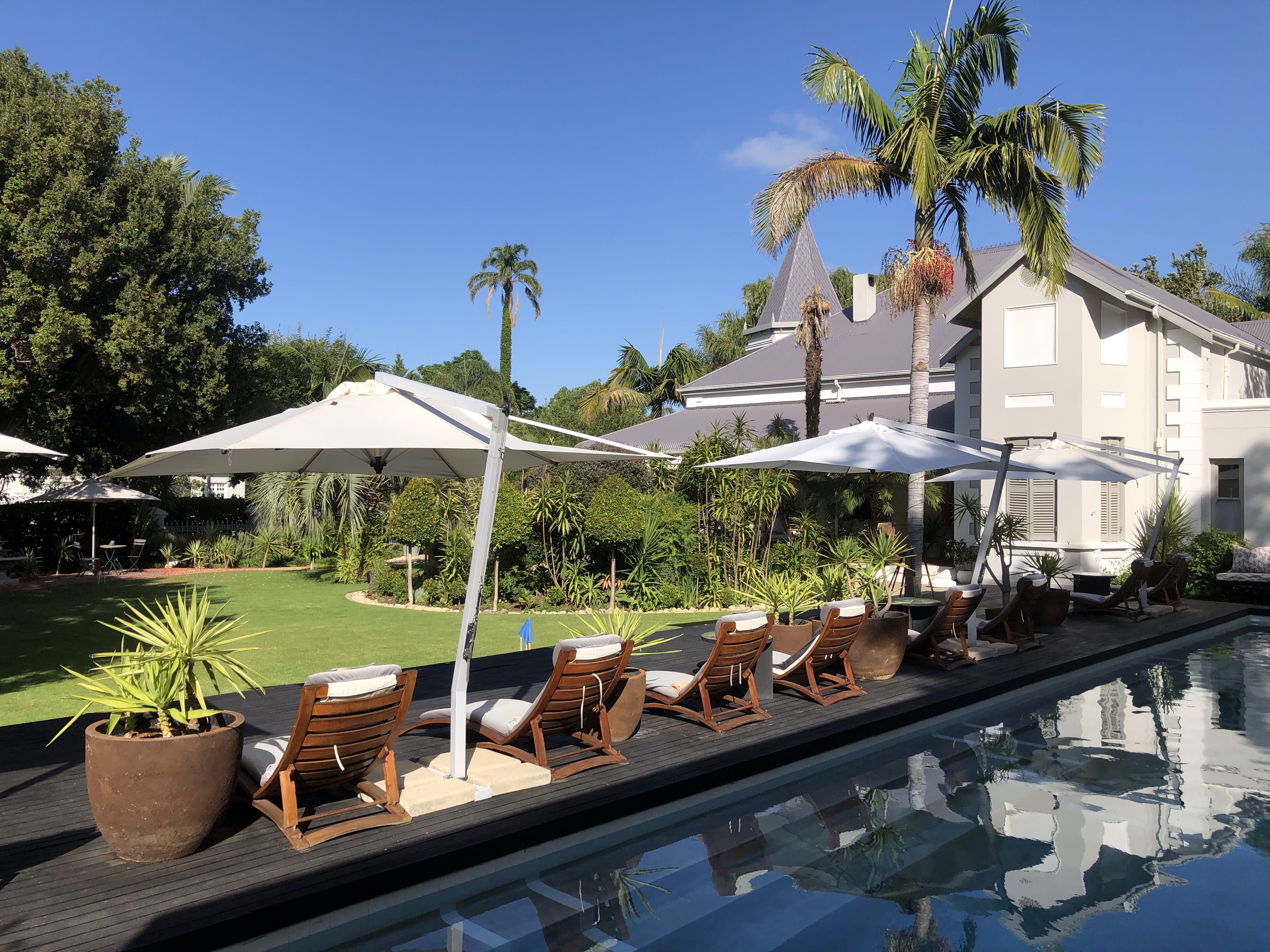 We made a one night stop in Robertson on the way from Gansbaai to Franschhoek. It is a wine town at the western end of the R62 and we stayed in a Victorian Manor House, which has been converted into a boutique hotel with very popular restaurant. We stayed in a room in the former stables with views over the pool and croquets lawn.