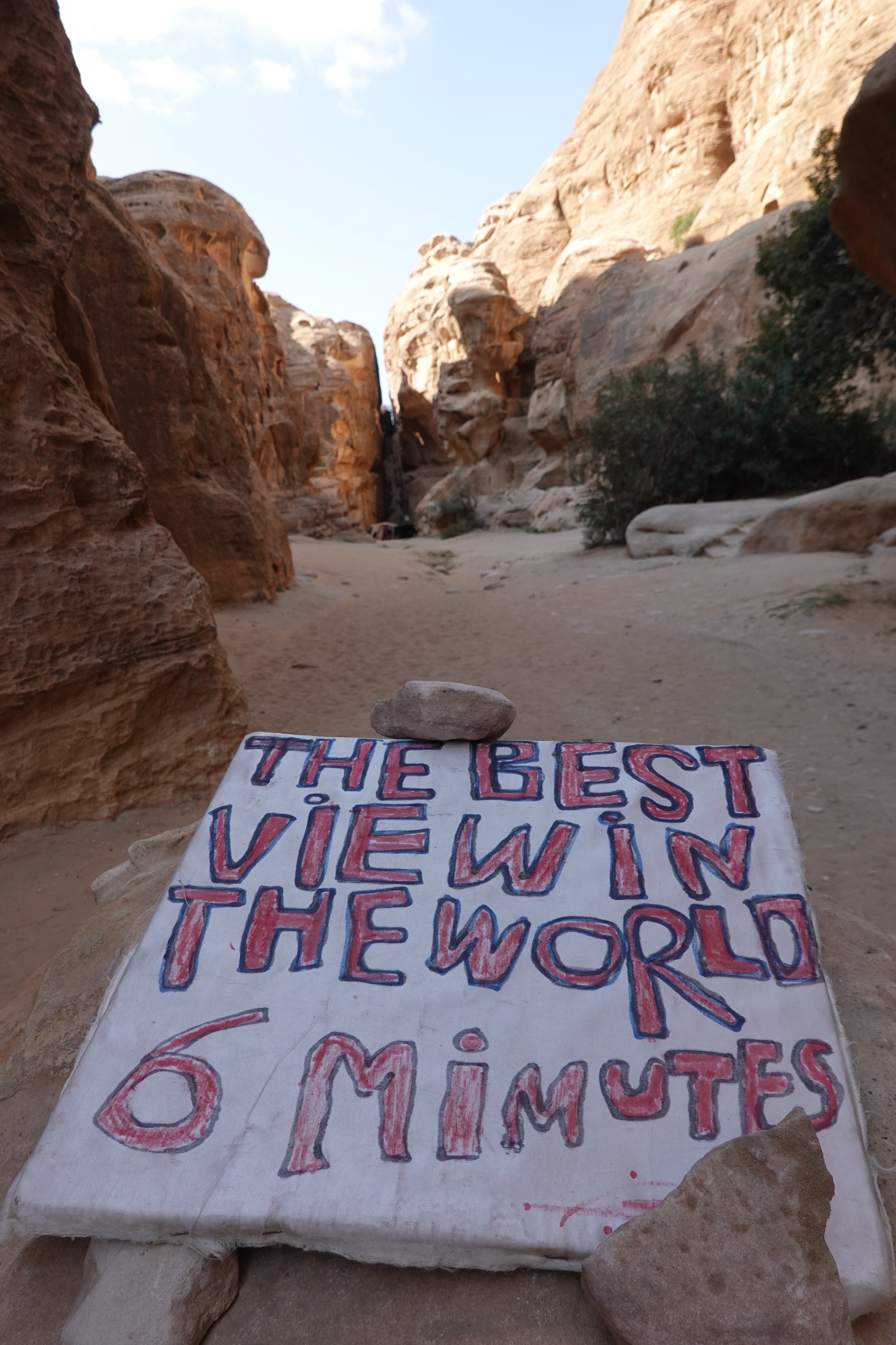 Colloquially known as Little Petra, Siq Al Barrid is a few kilometres from Petra and was also built by the Nabateans. It is much quieter than its big brother and although much smaller is still spectacular. At the end are steep steps through a very narrow canyon leading to a view over the wind eroded landscape advertised as the “Greatest View in the World”, presumably by the woman who sells tea at the top.