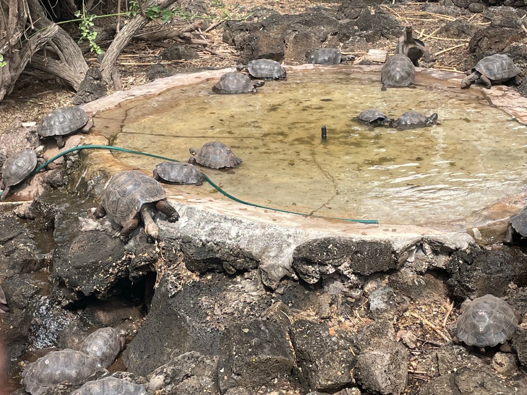 On Santa Cruz Island we visited the naturally formed sinkholes known as Los Gemelos (the twins) and a large lava tunnel. This can be walked through, but includes a narrow section to scramble through. We also visited giant tortoises at a private estate where they roam freely, including across roads and the 7km journey to nesting sites in the lowlands.