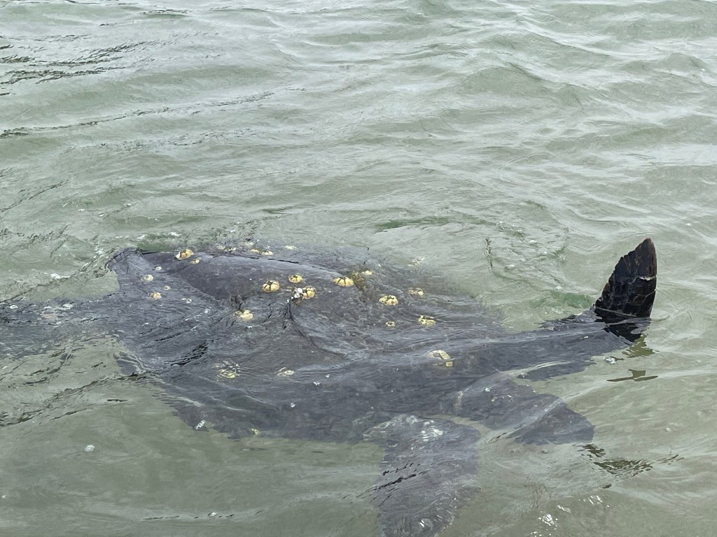 Our guide, Mario, pointing out the sharks – Tim just out of shot in the kayak